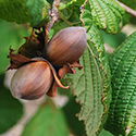 Cobnuts or hazel nuts growing at Brogdale Farm, Kent, England. |