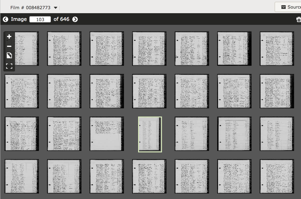 The filmstrip shows miniatures of the index pages. All the names beginning with A are together. Same with B, C, D, etc. You can often see where one letter ends and the next begins and make a pretty accurate guess. The start of the letter D is shown in yellow.